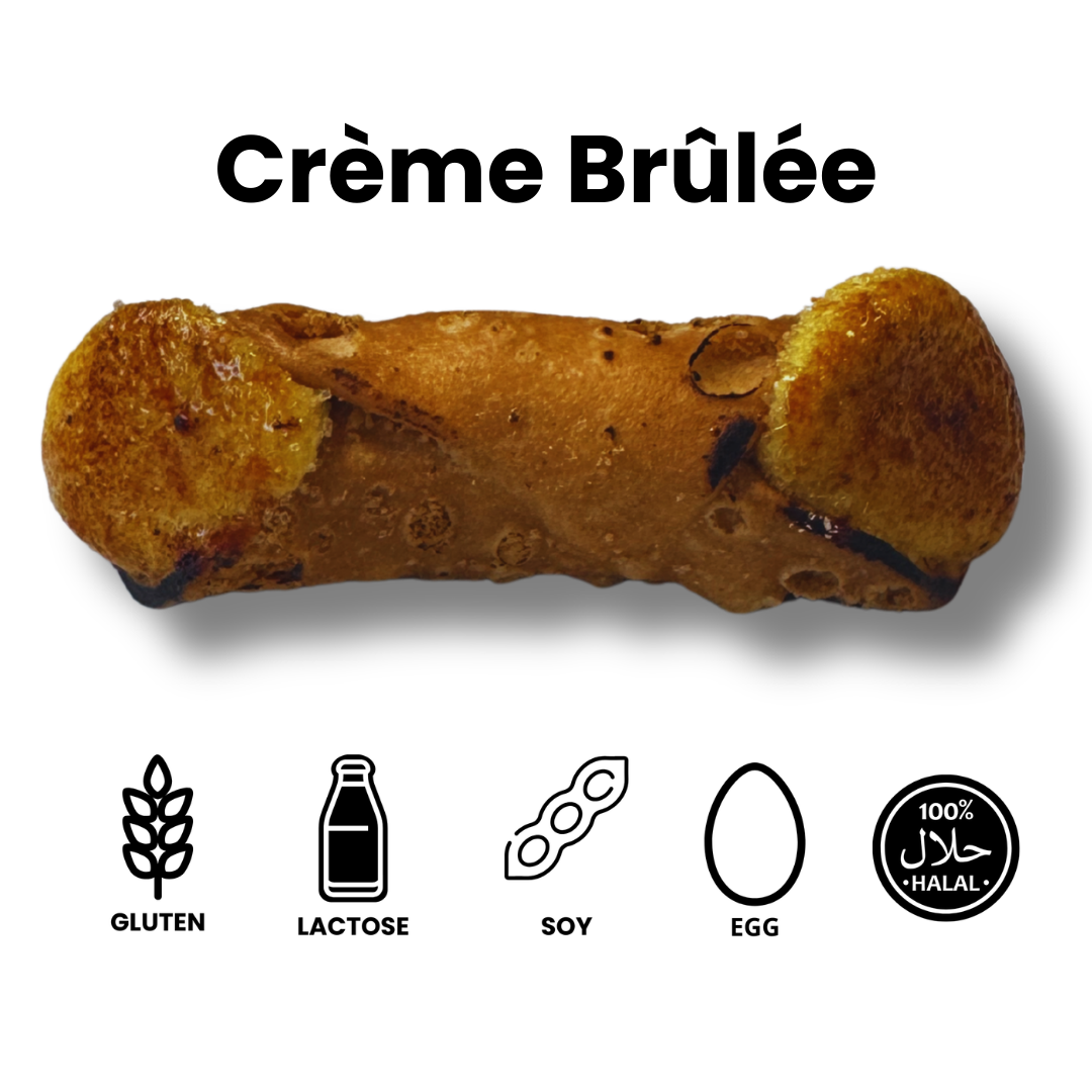 Met een romige vanillecrèmevulling en een knapperige gekarameliseerde suikertopping biedt deze verfijnde lekkernij een decadente traktatie voor elke fijnproever.