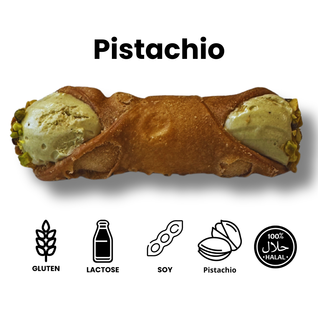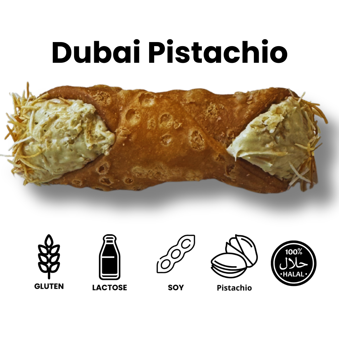 Geïnspireerd op dé virale TikTok-trend! Deze cannolo combineert onze zachte witte chocoladecrème met 100% pure Italiaanse pistachepasta, en is afgewerkt met krokant gebakken kadayif voor een verrassende, luxe crunch.